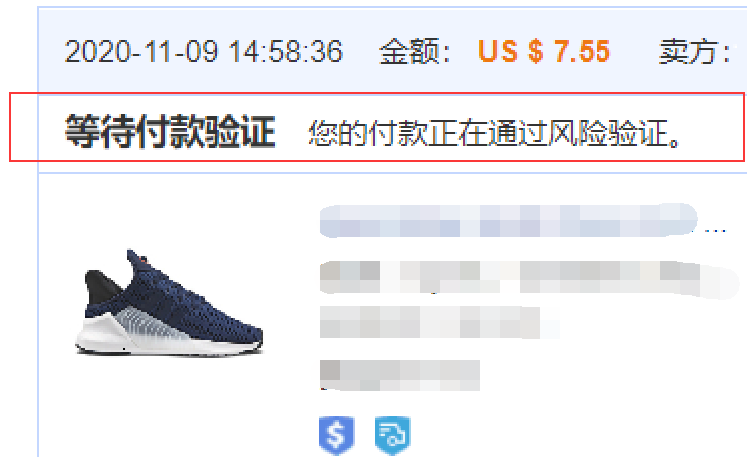 可以绑卡并且支付成功,但是订单页面显示您的付款正在通过风险验证.