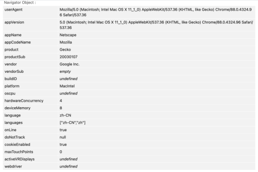 网站通过javascript代码,获取到浏览器指纹数据,这些数据包括useragent、时区、屏幕大小、分辨率、字体、插件等信息,并根据这些数据,来创建唯一的数字签名。