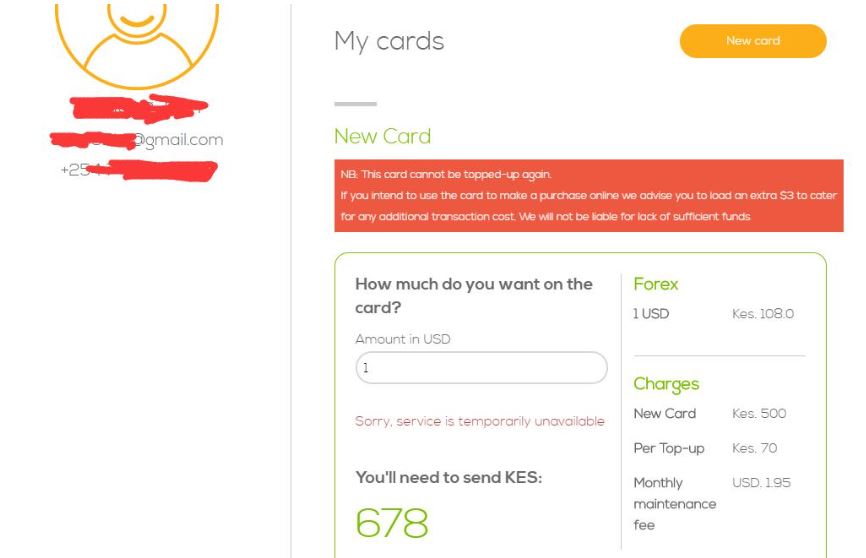 登录后,您可以一键打开卡,该卡为一次性使用,不能重复充值,充值金额将从您的肯尼亚手机账单中扣除。。详细的费用结构如下。