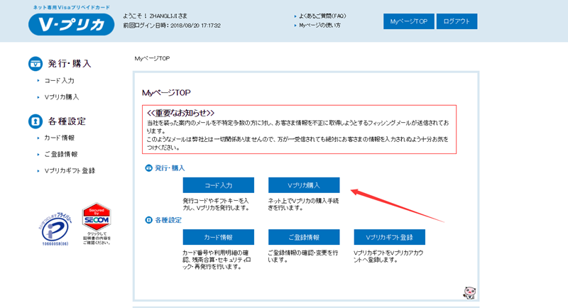 在v-preca虚拟卡不能与境外发行的日本信用卡交易。